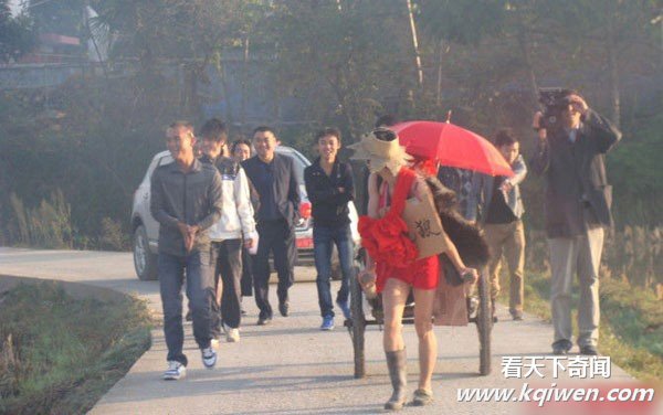 实拍见识下新农村的时尚婚礼吧,色狼的恶心装扮,手拉车接新娘。 (责任编辑:賀筅甡.!)