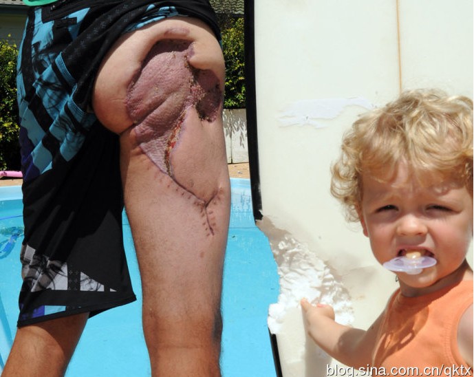 悉尼男子冲浪遭鲨鱼撕咬大腿 神奇脱身(图)